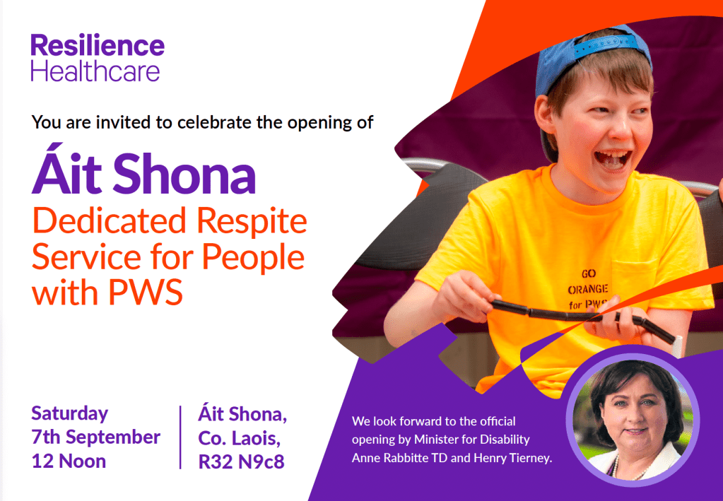 We can’t wait to celebrate with everyone at the opening of Ait Shona, the dedicated respite service for people with PWS provided by Resilience Healthcare.