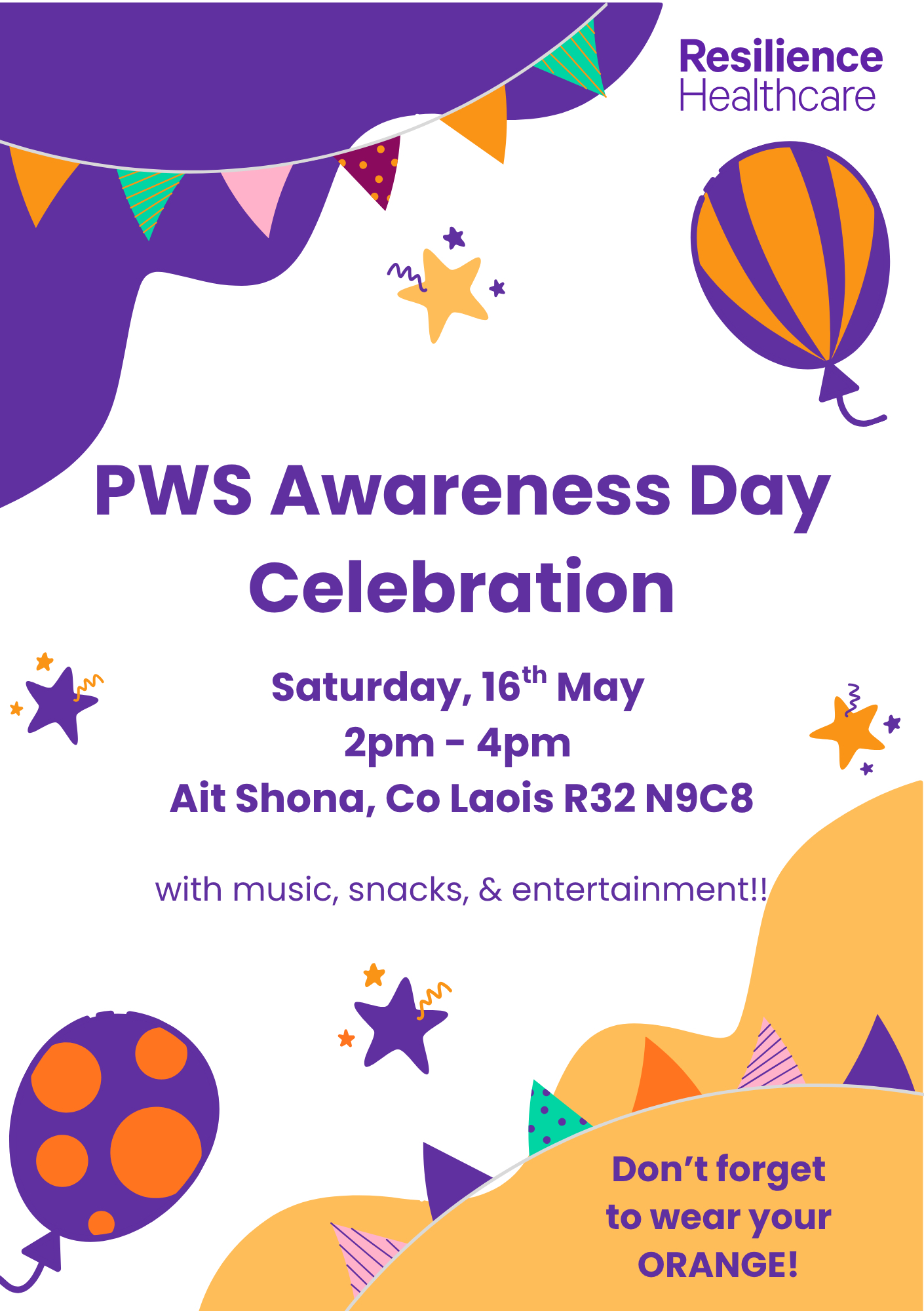We’re delighted to share this with you. Please RSVP to Emma via this form before the 5th May Thank you! Don’t forget to wear your orange for PWS Awareness! Share this: Email a link to a friend (Opens in new window) Email Print (Opens in new window) Print Like Loading... Related