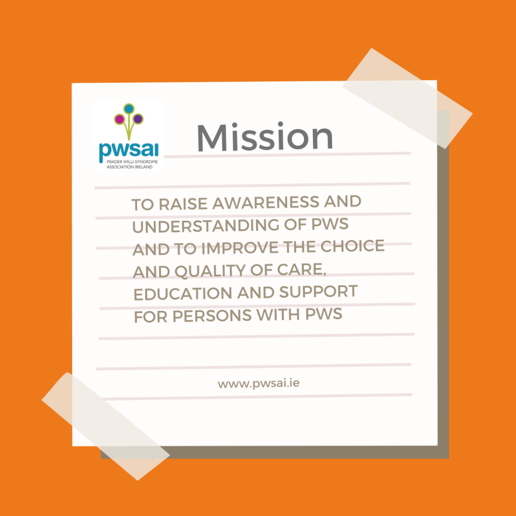 By joining PWSAI you will strengthen its voice and mandate in seeking to raise awareness and understanding of PWS and to improve the choice and quality of care, education and support for persons with PWS in Ireland.