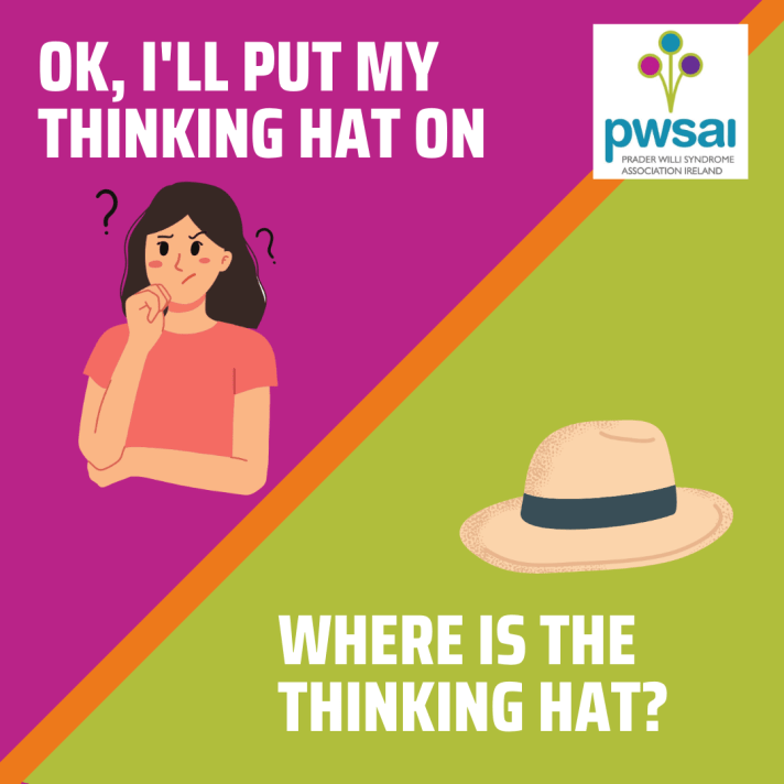 Person with PWS: Where is your hat? Are you thinking? Do you know the plan?