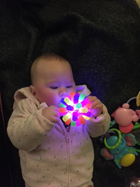 - Wilbarger brushing protocol, along with Joint Compressions. Use a therapeutic brush! Initially five times per day but reduced within two months to twice daily, as hand twirling reduced. As Cora became more mobile her parents were able to stop the joint compressions. After four months they were also able to stop the brushing. They periodically return to the Wilbarger brushing protocol if required. The tell tale sign that Cora’s Tactile system needs strengthening is when she tends to hold her hands mid air. This is noticeable in the evening during her winddown time, watching Peppa Pig on the couch.